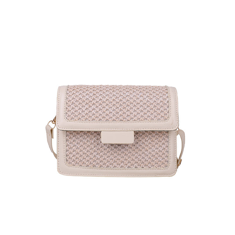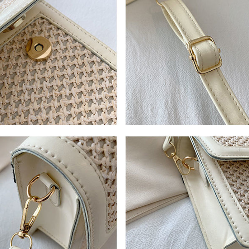 • Sikret med en klemme er denne raffia-taske både praktisk og stilfuld