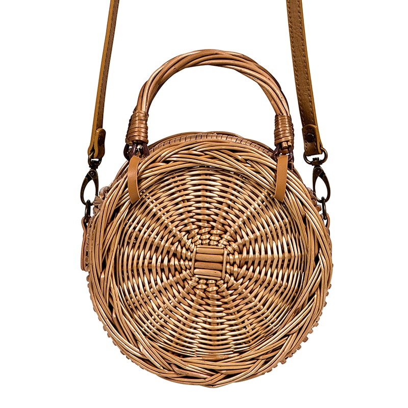 - Stilfuld rund flettet taske i håndtaske-stil