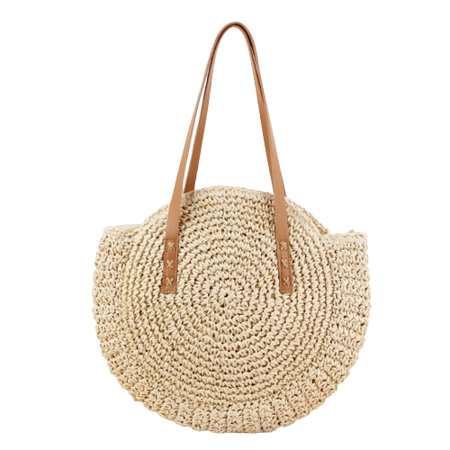 Stilfuld rund strandtaske i raffia til dine sommereventyr