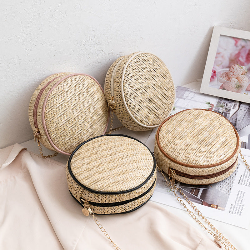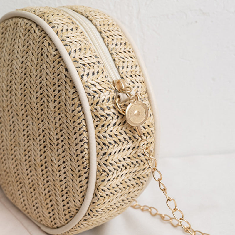 Rund skuldertaske af raffiastrå