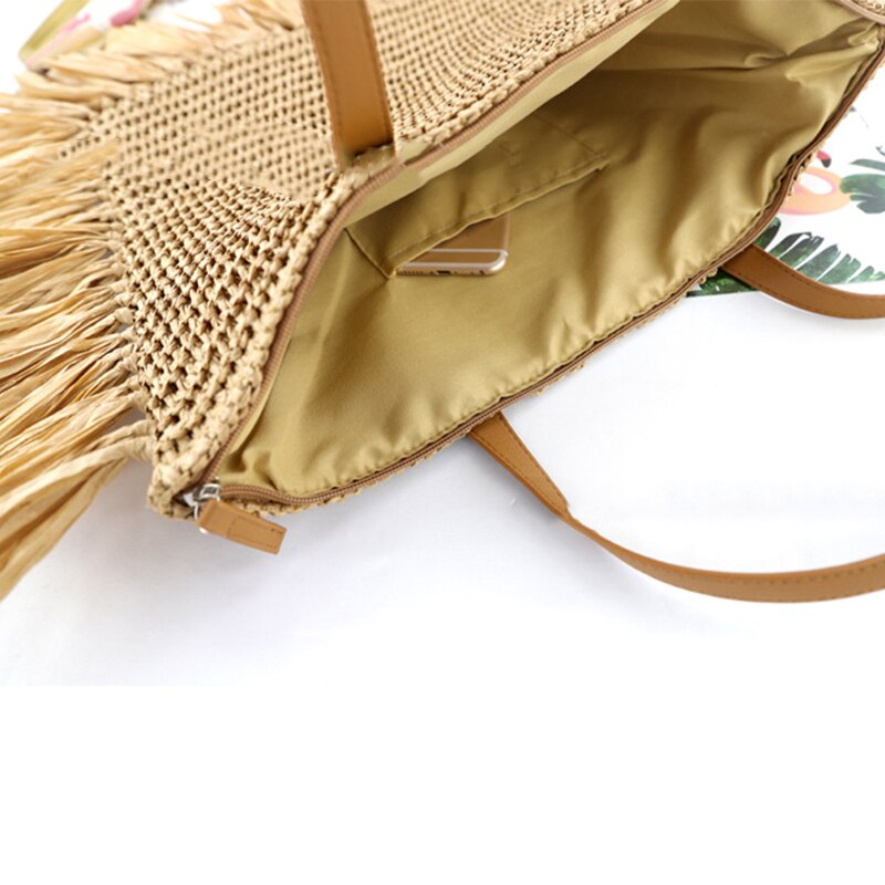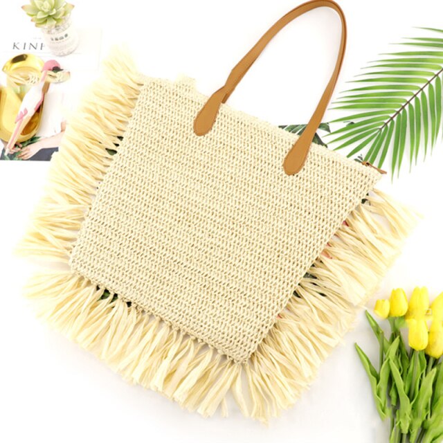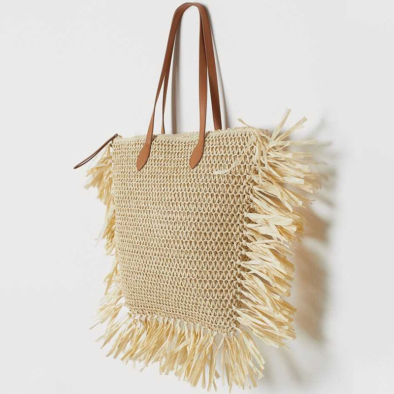 Denne trendy strandstrå er ideel til at bære dit badehåndklæde, fouta og solcreme. Den er dog ikke kun til stranden. Du kan også bruge den til at shoppe på markeder eller som en sommerhåndtaske til en tur rundt i byen. Den bohemeagtige strandstrå er det perfekte tilbehør til enhver lejlighed.